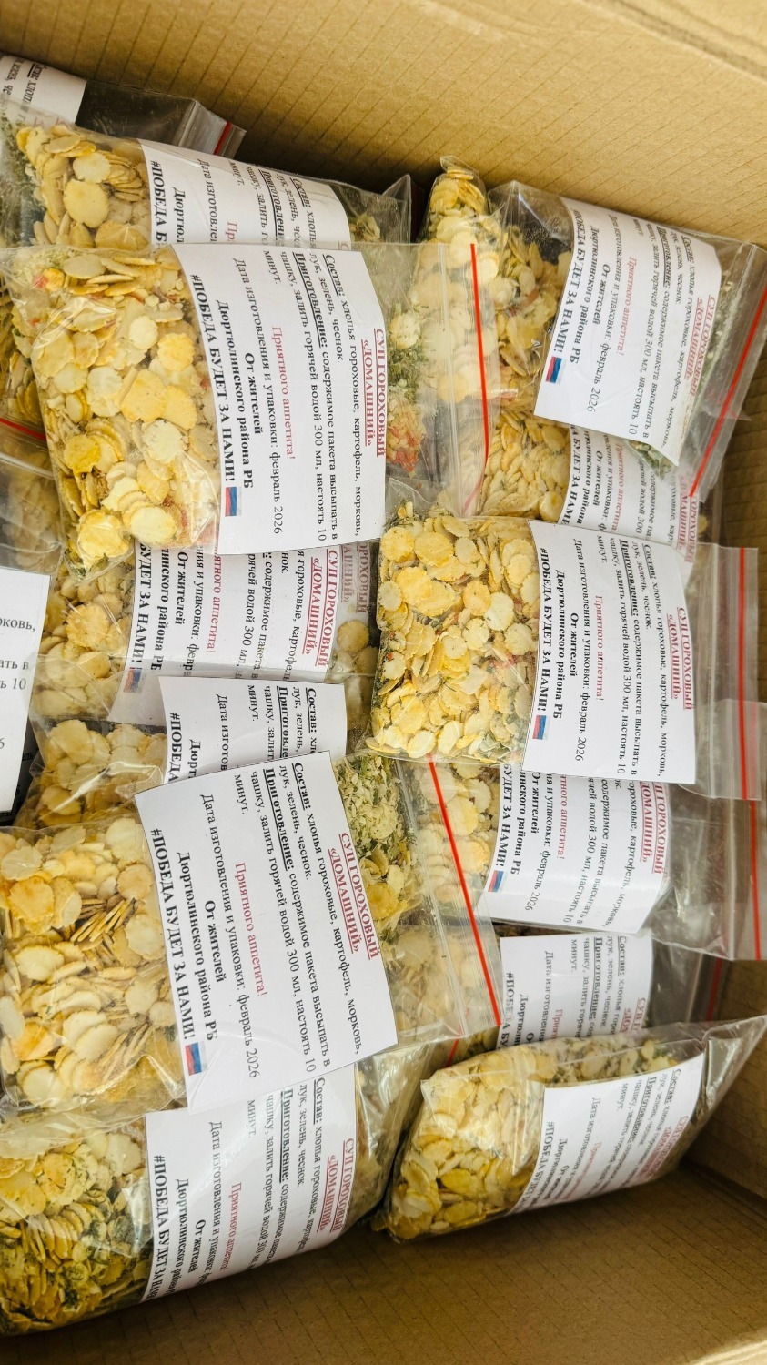 Под руководством Динары Кривко, возглавляющей волонтерский штаб, работа спорилась с первых минут. Результат совместных усилий впечатляет: добровольцы сформировали 700 пакетиков витаминного травяного чая и 100 порций сухого горохового супа с сухариками. Такая продукция крайне востребована в полевых условиях, так как позволяет бойцам быстро и вкусно пообедать, почувствовав заботу земляков.