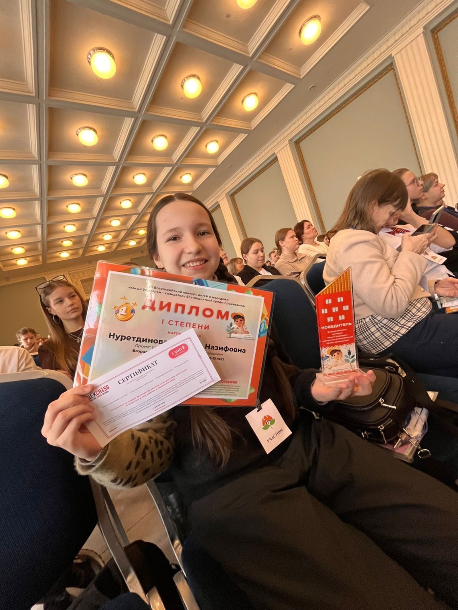 Всего на конкурс было подано более 750 заявок, из которых лишь 230 лучших работ из 40 регионов России были допущены к очной защите. В условиях жесткой конкуренции экспертная комиссия признала проект Назгуль под названием «Школа: мини-город заботы и здоровья» самым перспективным и проработанным.