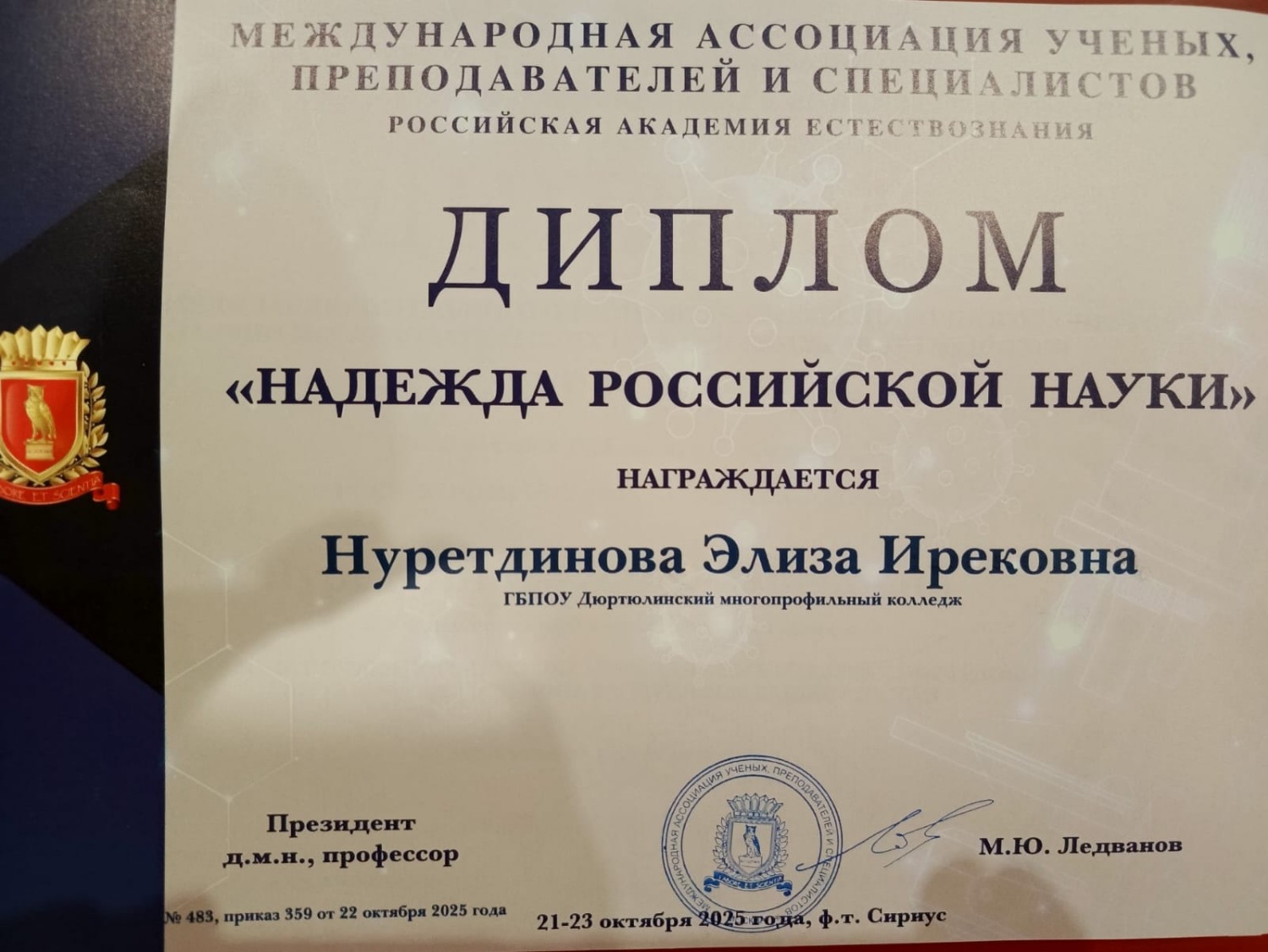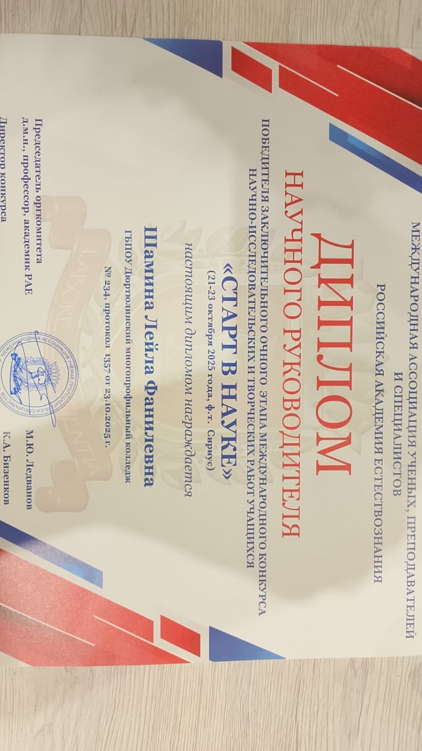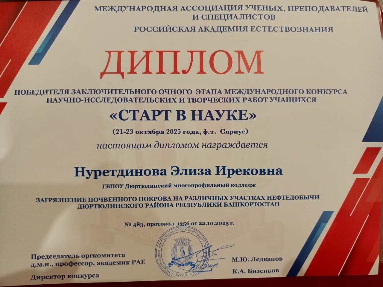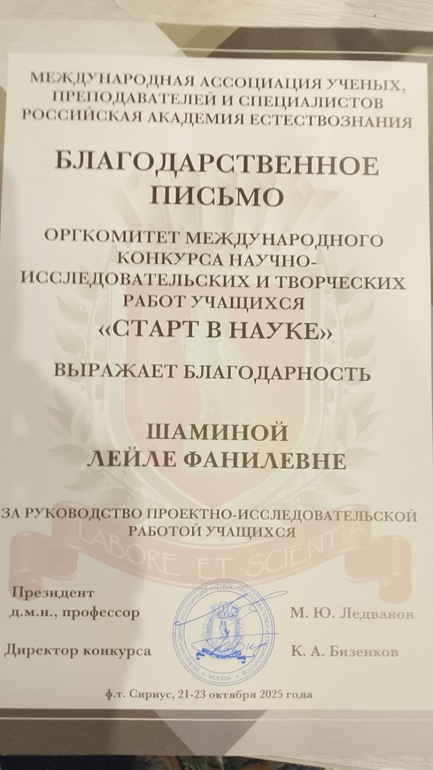 Успех Элизы – это не только личная победа, но и значимое достижение всего образовательного учреждения. Поздравляем девушку и её наставника с заслуженной победой и желаем дальнейших успехов в научно-исследовательской деятельности!