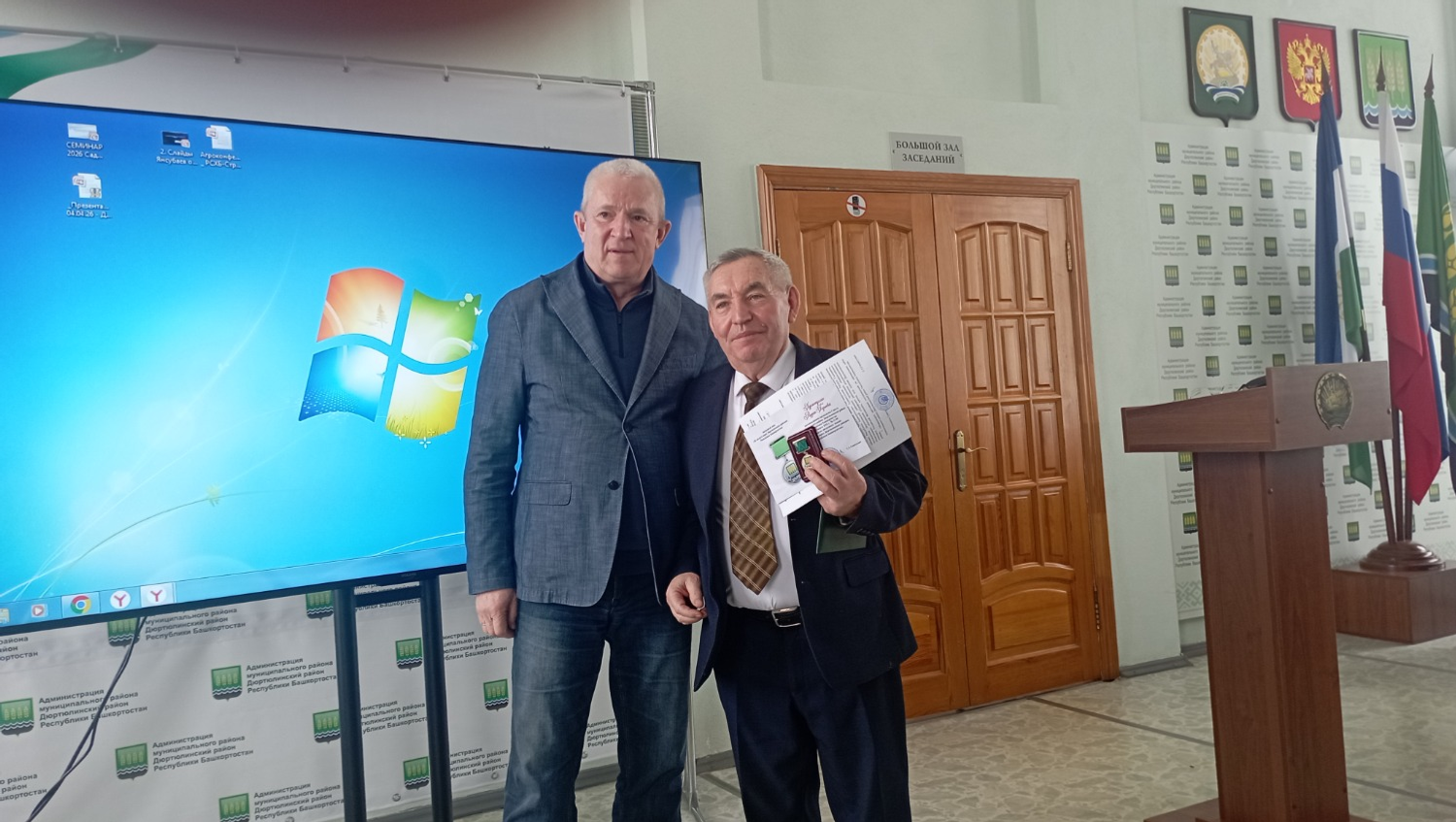 В торжественной части совещания наградили достойных аграриев. Почётными грамотами Федерации профсоюзов Республики Башкортостан и администрации района "За многолетний добросовестный труд, активную работу в Профсоюзе и связи с 70-летием" был награждён Раудат Хурматуллин, председатель районной организации ООО "Профсоюз работников АПК ПФ". Также его труд в системе агропромышленного комплекса был отмечен нагрудным знаком "За заслуги перед Дюртюлинским районом Республики Башкортостан".