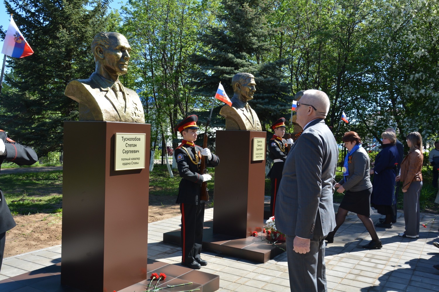 Память народа о войне, о том, чем она грозила человечеству, о том, кто спас мир от нацистской чумы нельзя уничтожить – 22 июня 2018 года на берегу реки Белой у монумента «Солдат, уходящий на фронт» состоялось открытие «Аллеи Боевой Славы» в память о подвигах наших земляков, героев Советского Союза – Василии Николаевиче Горшкове, кавалере трех Орденов Славы Зиннуре Зариповиче Зарипове, кавалере трех орденов славы Степане Сергеевиче Туснолобове. В связи с реконструкцией набережной и по предложению горожан было решено перенести скульптурную композицию «Аллея Боевой Славы» в сквер у городской библиотеки.