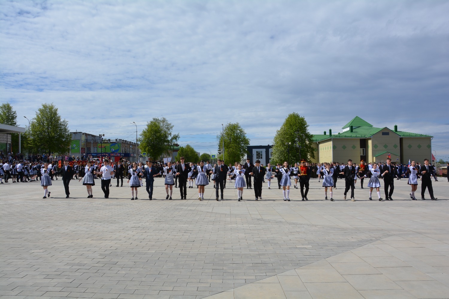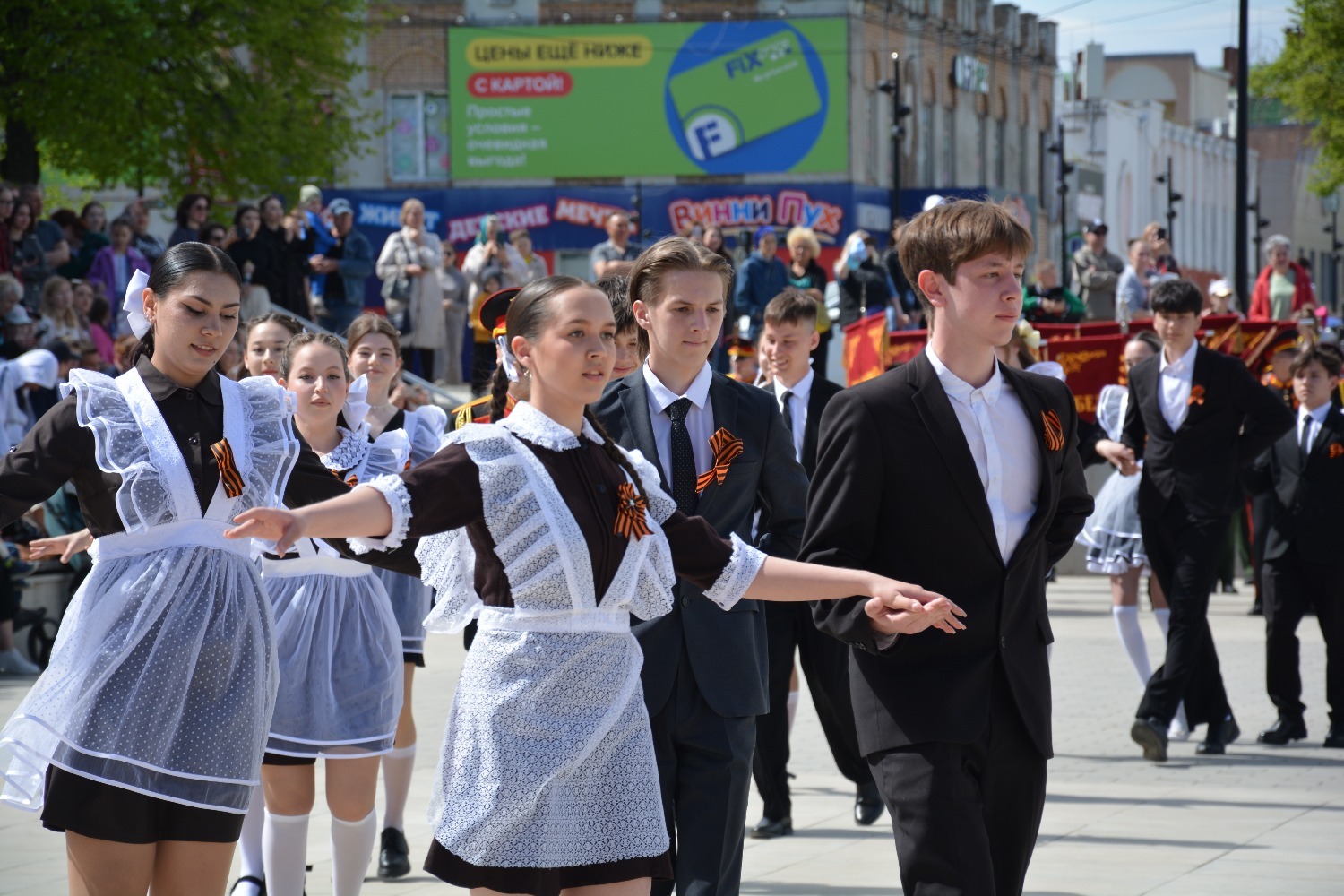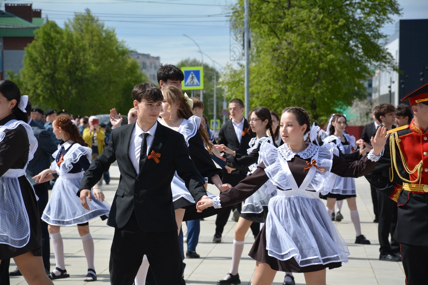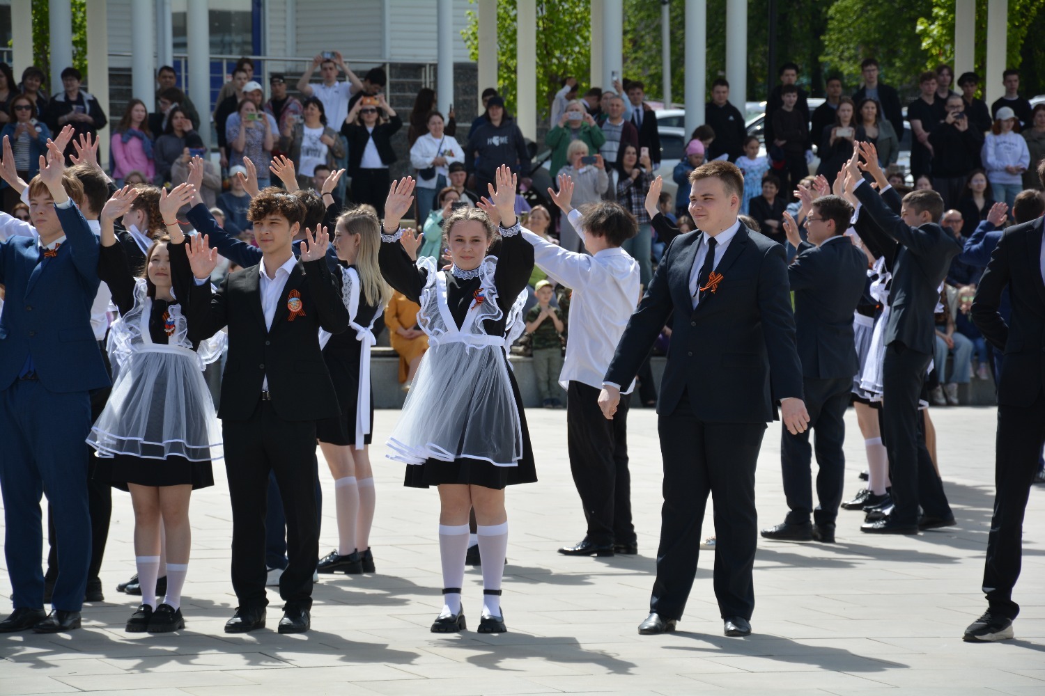 Сегодня на площади им. Ленина 11-классники городских школ приняли участие в танцевальной постановке «Вальс Победы».