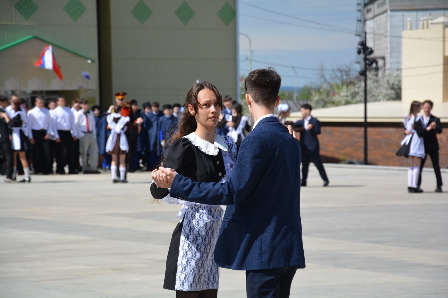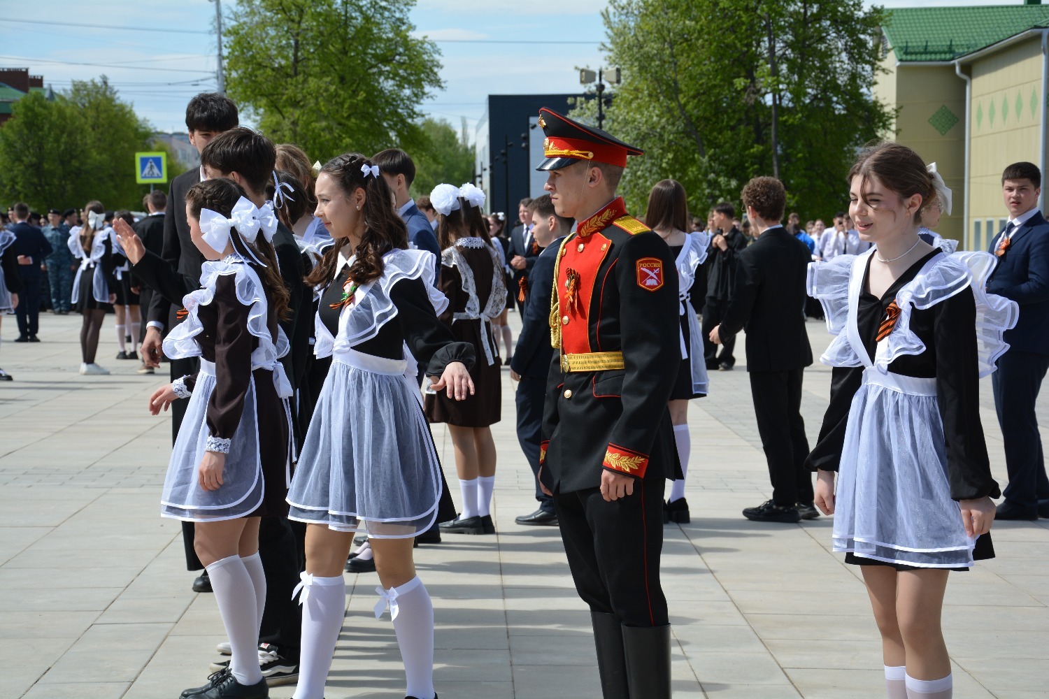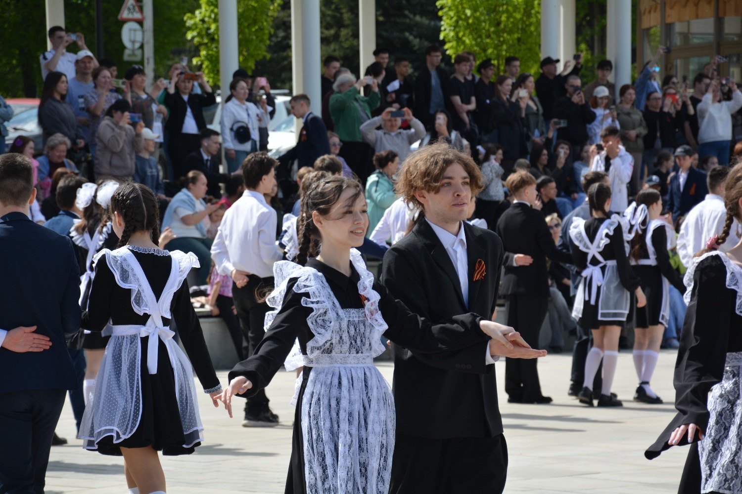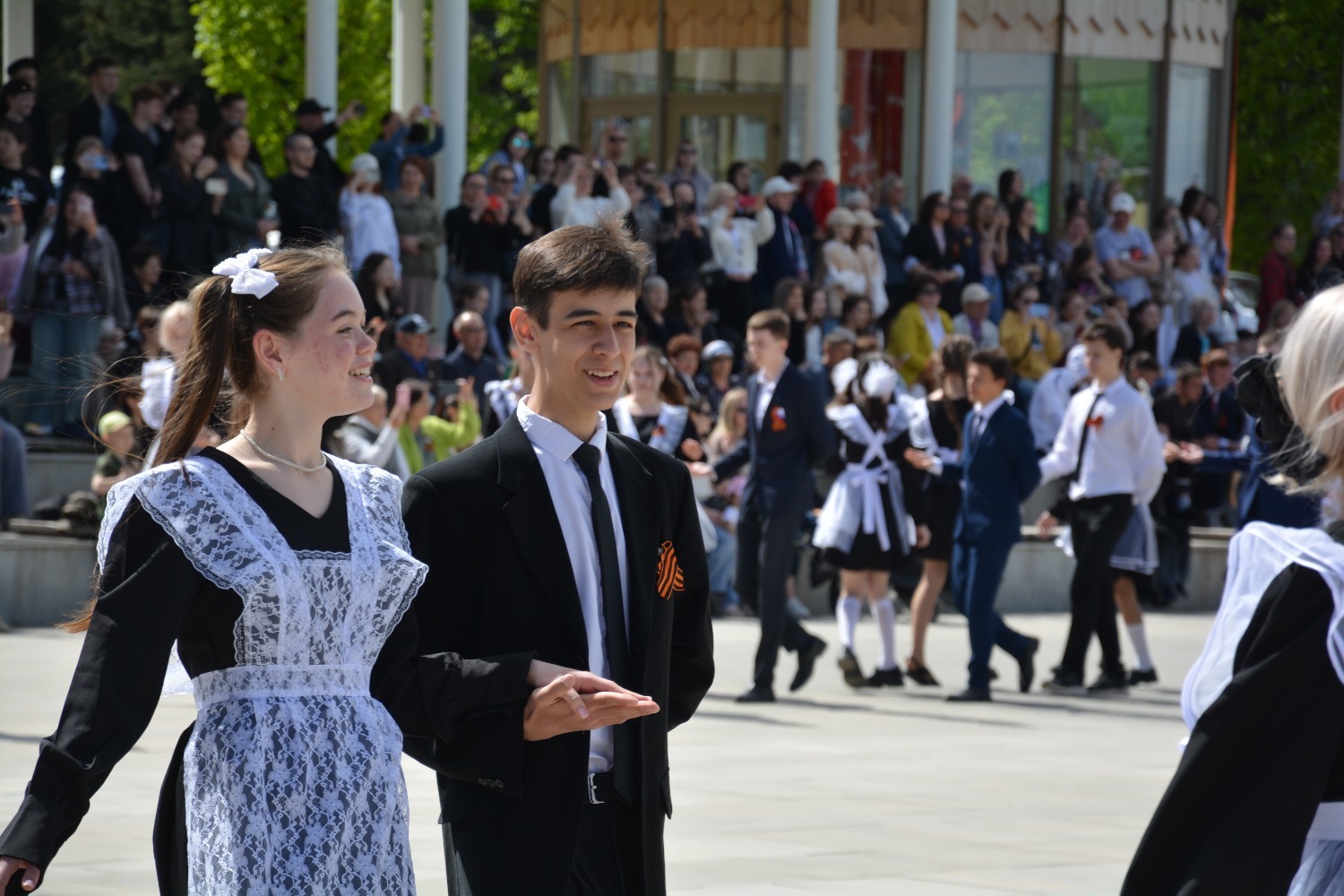 Сегодня на площади им. Ленина 11-классники городских школ приняли участие в танцевальной постановке «Вальс Победы».