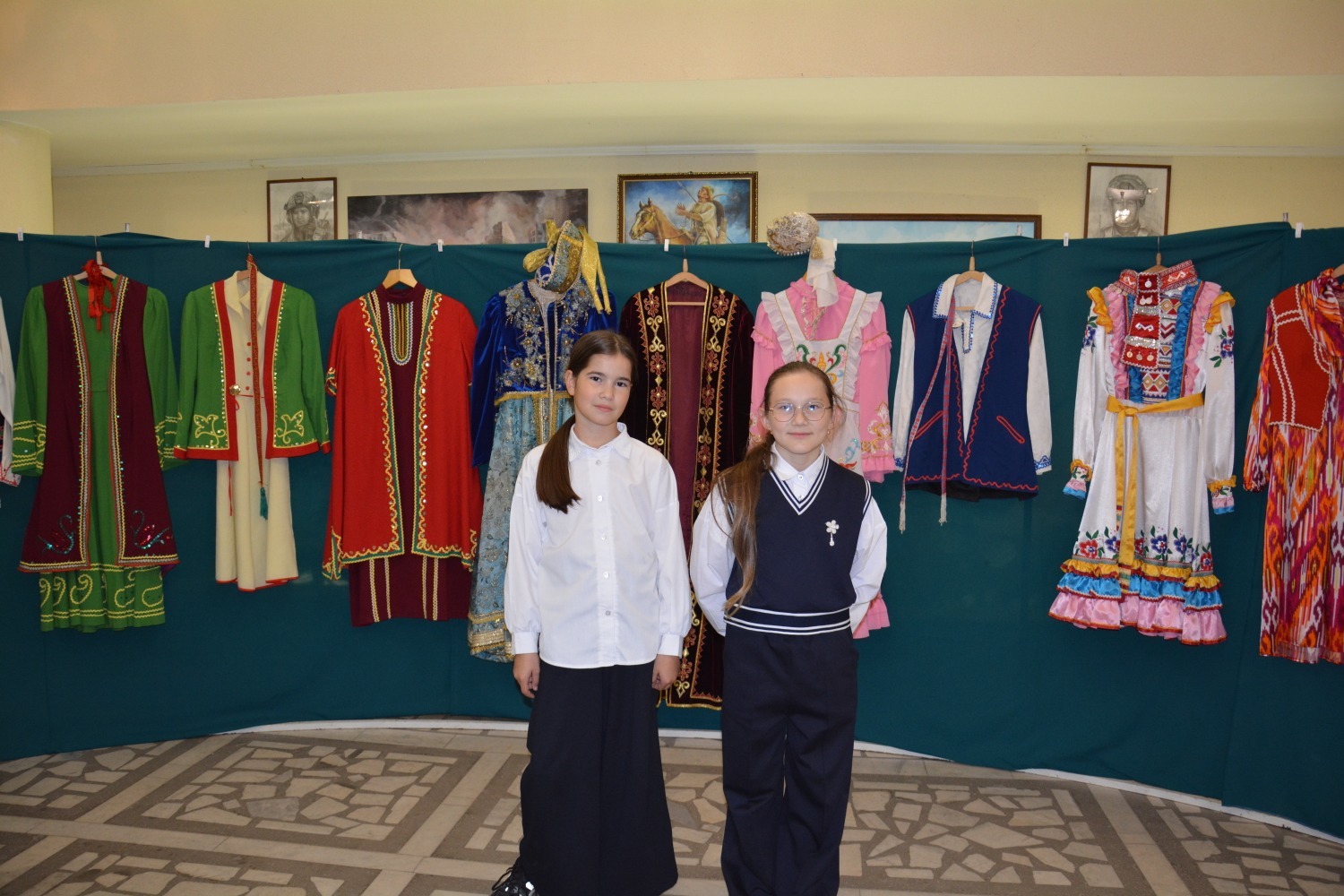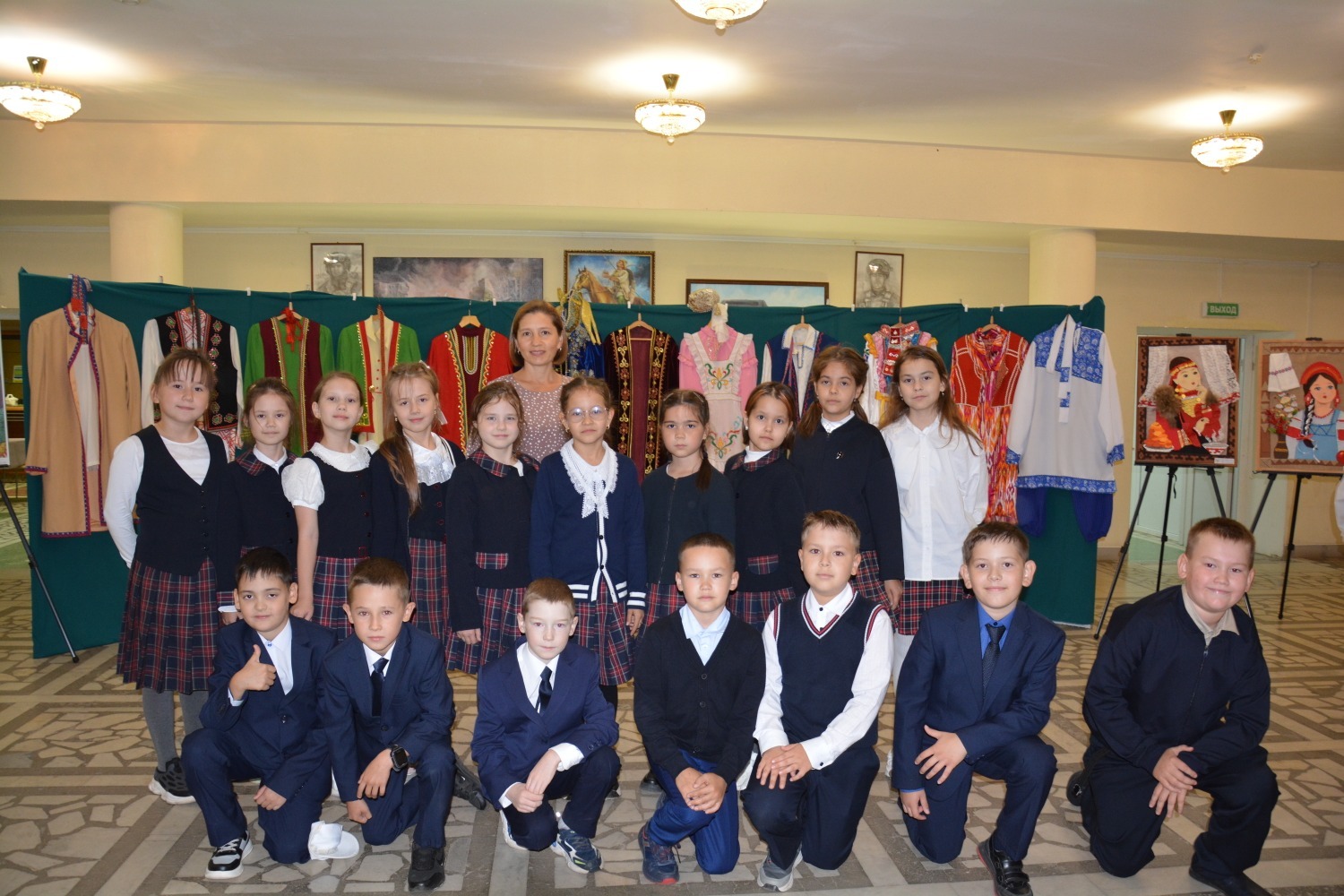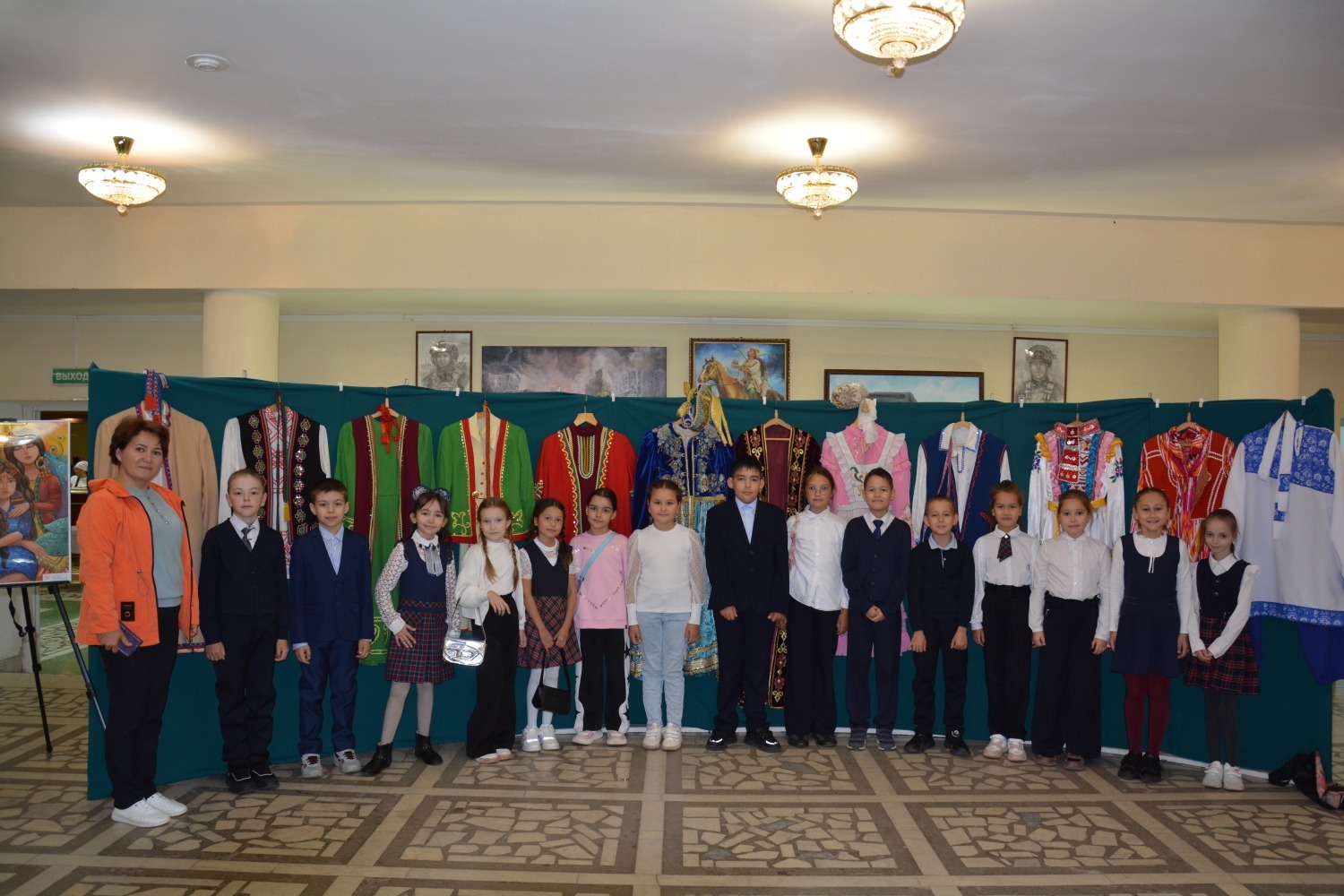 При входе в зал гостей ждала выставка национальных костюмов народов, проживающих на территории нашей республики - а их более 160. И у каждого свои исторические и культурные особенности, которые отражены в костюме. Затем в зале учащимся рассказали об особенностях каждого костюма - башкирского, татарского, марийского, белорусского и даже испанского. Уникальную красоту народных костюмов ребята смогли увидеть воочию во время дефиле артистов. Дефиле чередовалось музыкальными номерами.