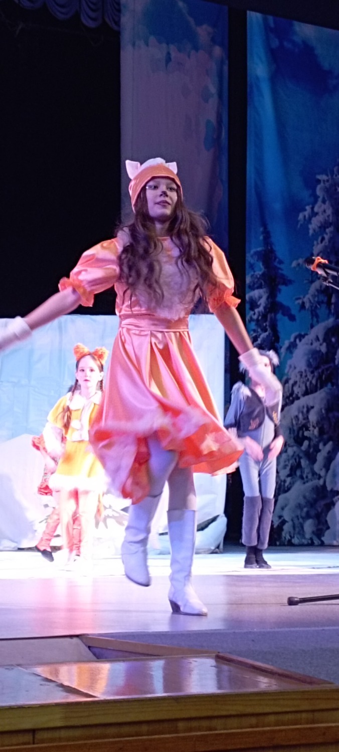 После торжественной части, вниманию детей была представлена инсценировка, подготовленная обучающимися объединений Центра развития творчества детей и юношества по произведению русского поэта Николая Некрасова, под названием: «Однажды в студёную зимнюю пору…». Если помнят читатели, мы в школьные годы разучивали это стихотворение из поэмы Некрасова «Крестьянские дети». С первых минут представления сказочные герои увлекли зрителей в волшебный мир чудес. В театрализованном сказочном представлении были задействованы образцовый коллектив «Театральная мозаика», яркую музыкальную составляющую обеспечили хореографические коллективы – «Забава» и «Грация», вокальный ансамбль «Весёлые голоса». Эмоциональный мини-спектакль, олицетворяющий взаимопонимание, дружбу и сплочённость сказочных персонажей – Лешия, Бабы Яги, лесных зверей с Дедом Морозом и Снегурочкой, стал настоящим новогодним подарком для юных зрителей.