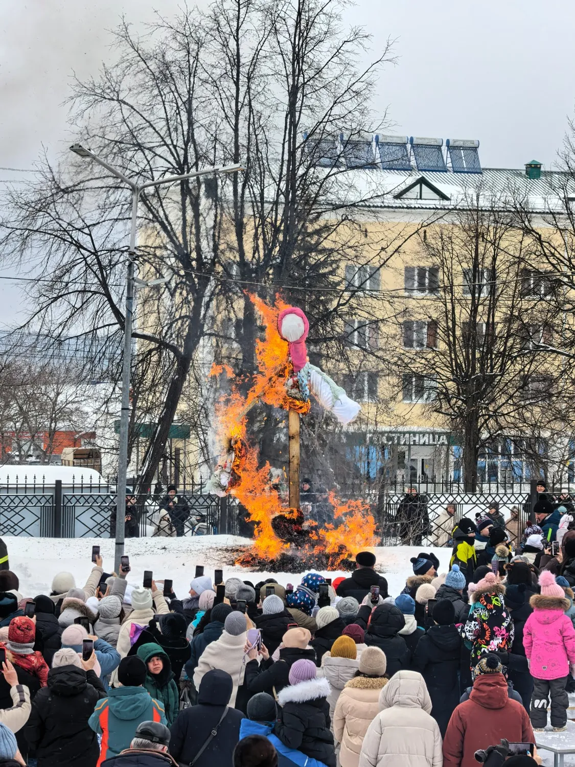 Кульминацией праздника стал большой хоровод и традиционное сожжение чучела Масленицы. Полыхающее пламя быстро охватило соломенную фигуру — а это, согласно народным приметам, верный знак того, что настоящая весна и ласковое тепло уже на пороге.