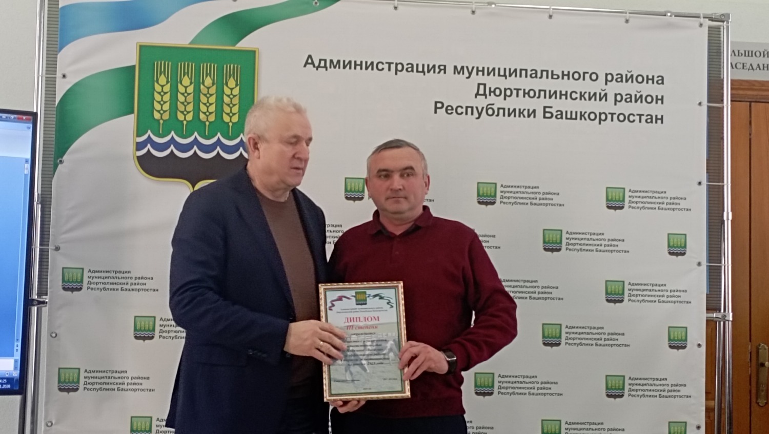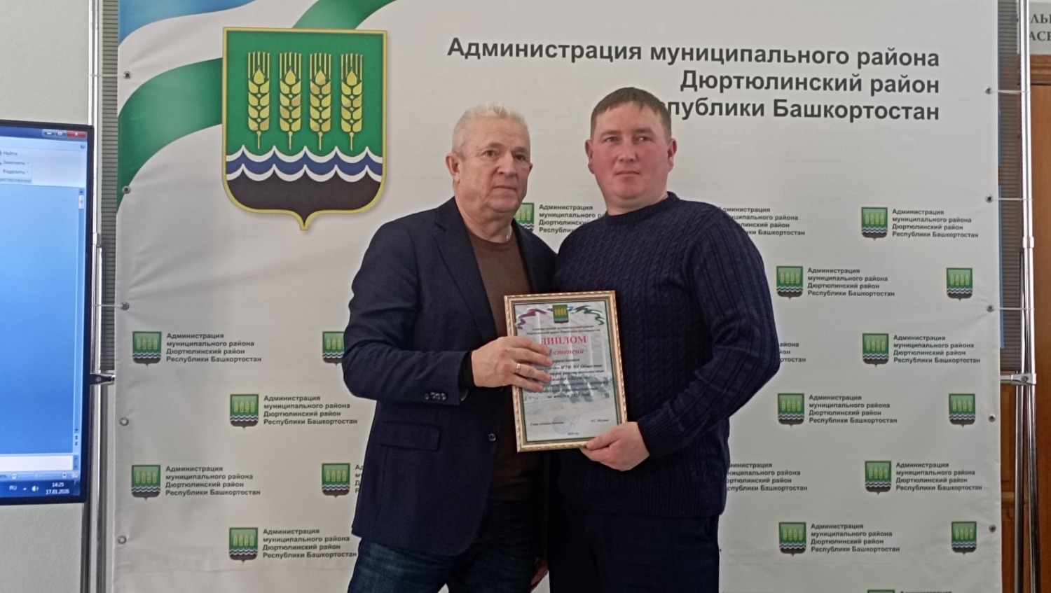 «За многолетнюю добросовестную работу в агропромышленном комплексе района и в связи с 50-летием со Дня рождения Почётной грамотой администрации района и денежной премией был награждён Рустам Тухбатуллин, индивидуальный предприниматель, глава Крестьянско-фермерского хозяйства.