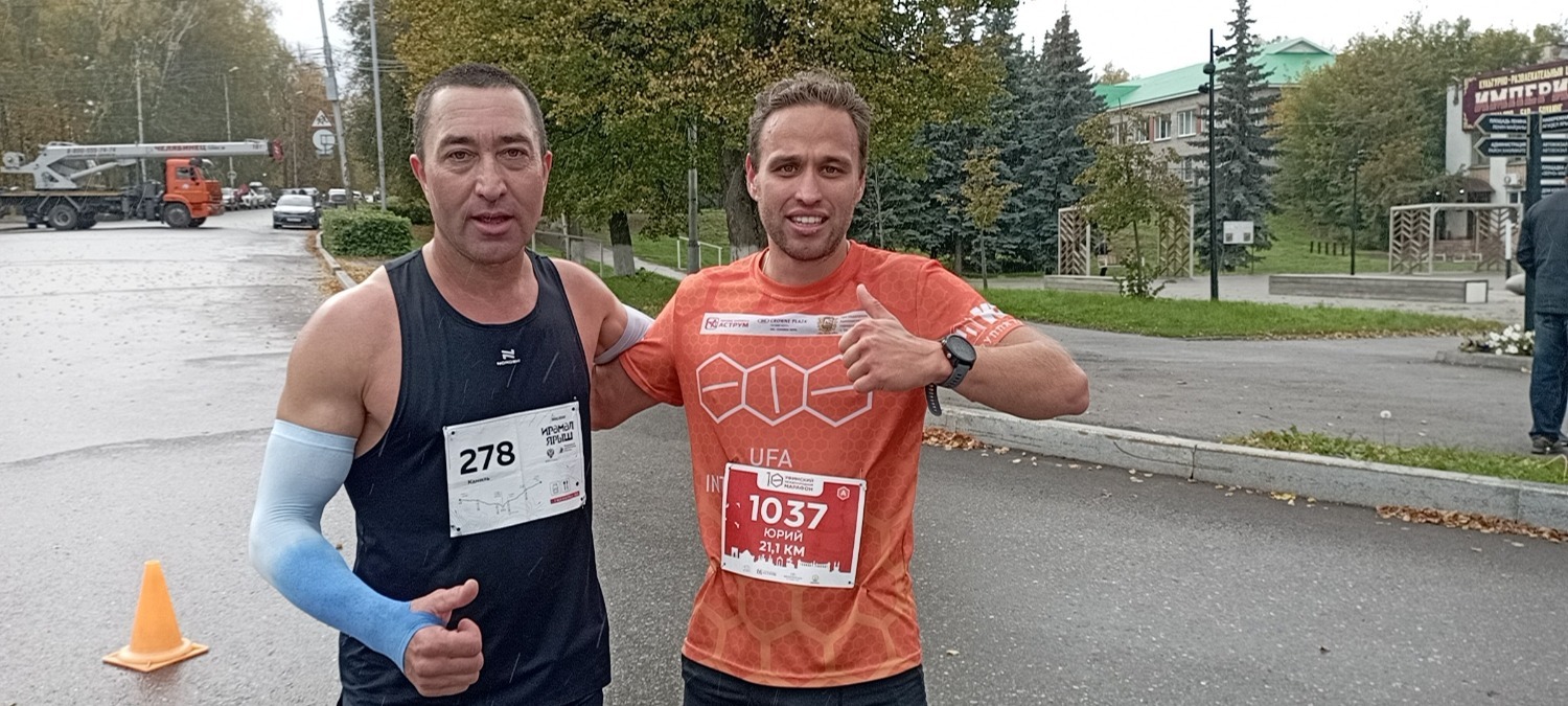 Титул абсолютного победителя полумарафона завоевал Юрий Плотников из Уфы. Юрий работает геофизиком, на нашем пробеге он участвует четвёртый год подряд и всегда занимает призовые места. В прошлогоднем полумарафоне он показал второй результат. «Я полюбил ваш с живописной природой город, окружённую лесами красавицу Агидель, гостеприимных, добродушных жителей и ежегодно с удовольствием приезжаю к вам»,- рассказывает чемпион. На втором месте гость из Казани Камиль Сабитов, третий результат у Владимира Захарова из Ижевска.