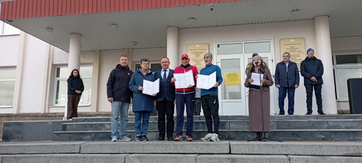 Далее дюртюлинцы, внесшие значительный вклад в проведении и развитии пробегов в течение последних 35 лет на нашей благодатной земле были награждены Почётными грамотами администрации района: Миннивасик Абдуллин, ветеран нефте-газодобывающего комплекса и спорта; Марат Мухамадеев, ветеран спорта; Гулуса Давлетгареева, учитель физической культуры МБОУ СОШ № 5 города.