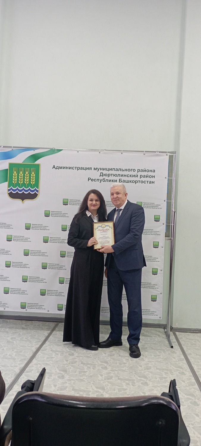 «За внесение значительного вклада в развитие физической культуры и спорта в районе и за его пределами, а также за высокие спортивные результаты» Благодарственные письма администрации района вручены следующим: Хузиной Ильнаре Ильшатовне, ведущему специалисту администрации городского поселения город Дюртюли; Кравченко Роману Андреевичу, руководителю футбольного клуба «БАРС» г.Дюртюли;